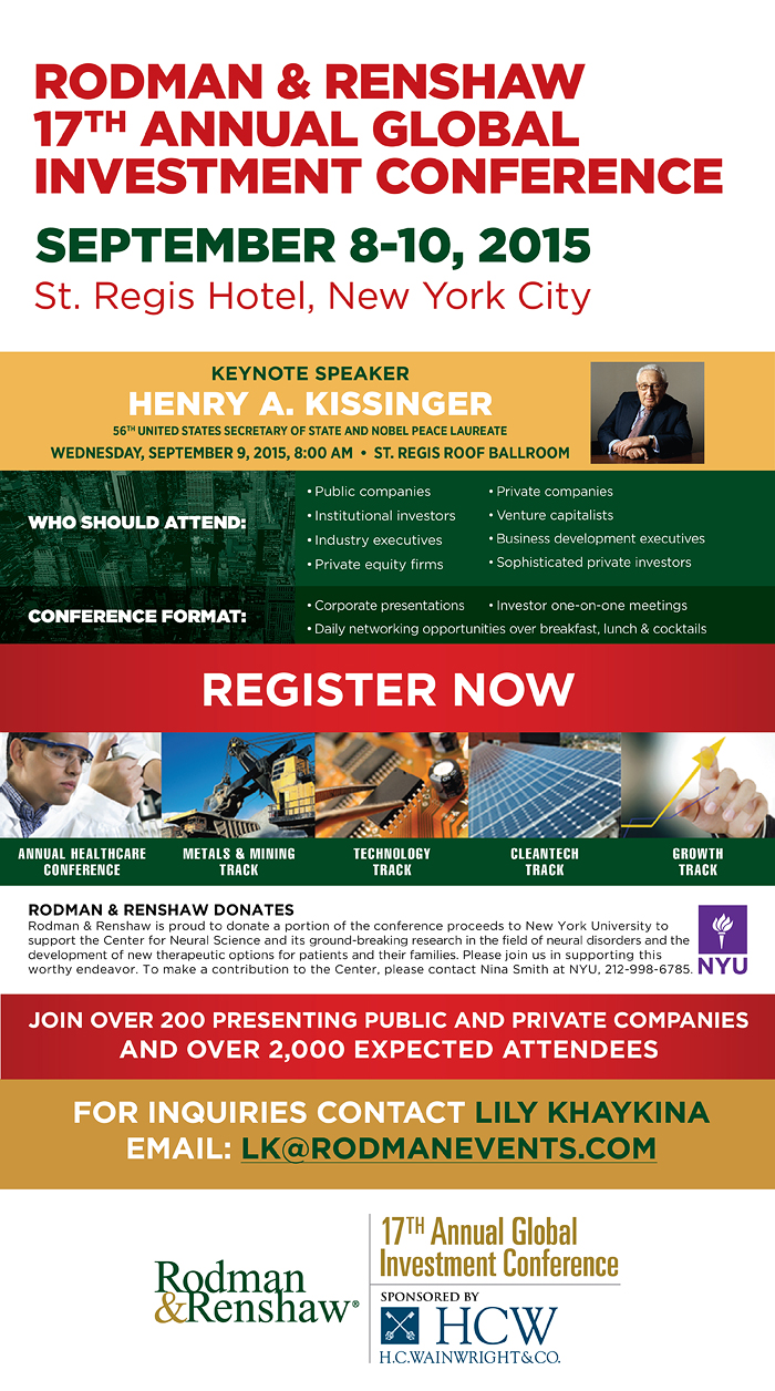 Western Copper and Gold will be attending Rodman & Renshaw’s 17th Annual Global Investment Conference in New York, New York. Chris Donaldson, Manager, Corporate Development will be presenting at the Conference at 3:50pm Eastern Time on September 9th. Check back for a link to the webcast.