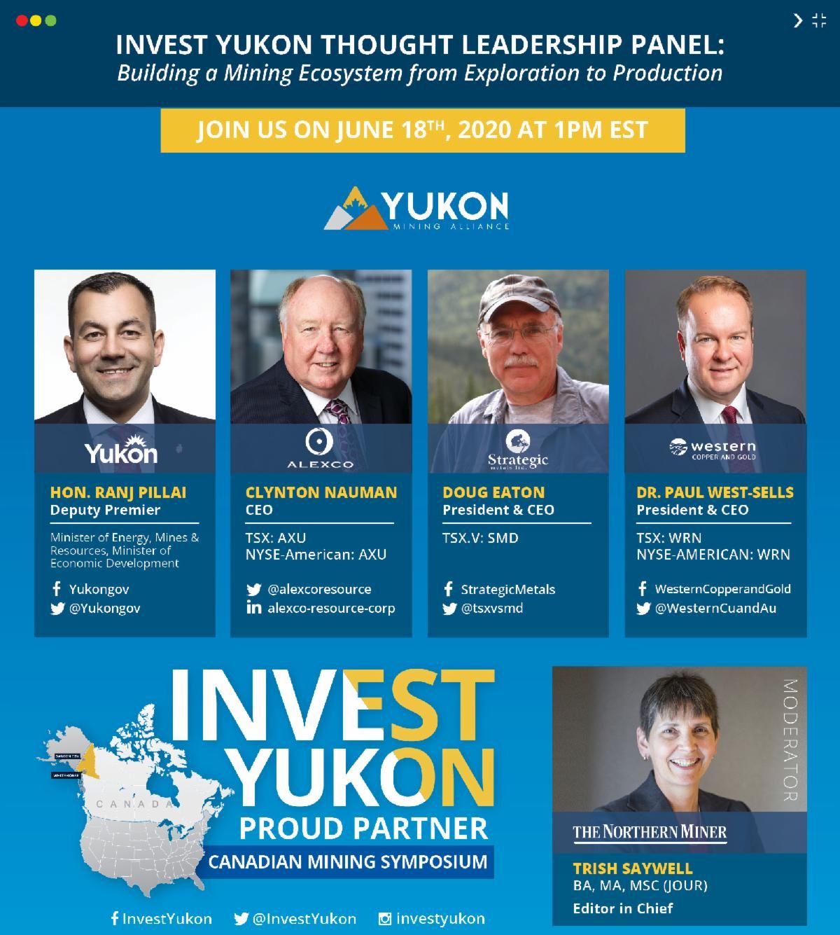 President & CEO Paul West-Sells is pleased to present at the virtual Invest Yukon Thought Leadership Panel, part of the Northern Miner’s 2020 Canadian Mining Symposium. Click here to register and meet the presenters.
